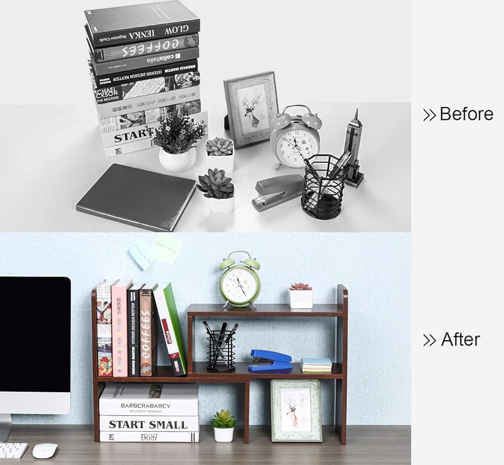 The small size makes this bookshelf perfect for any desk, writing desk, table or countertop. Take full advantage of your desktop space and keep your desktop clear.