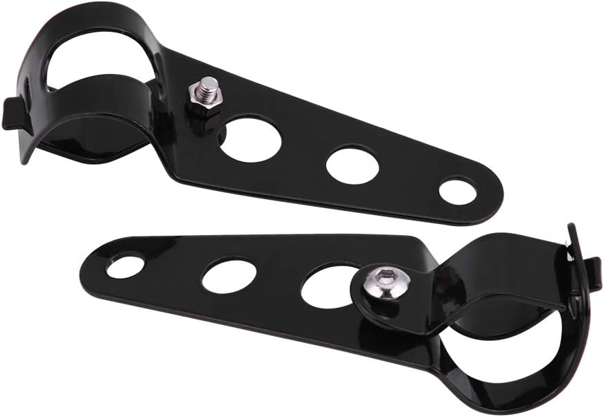【EXCELLENT PERFORMANCE】--- 100% brand new and high quality, From the center of the fork to the center of the furthest hole it is approximately 4 3/8". Headlight mounting hole is 3/8".