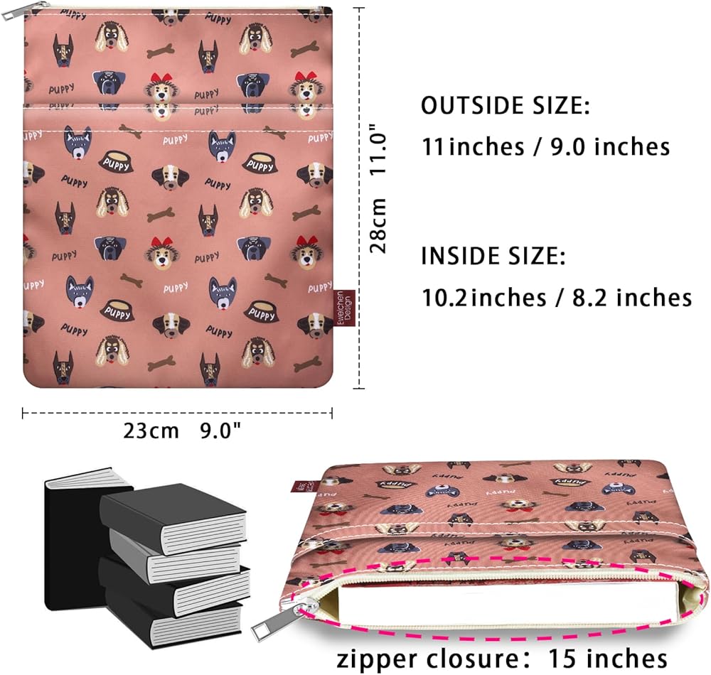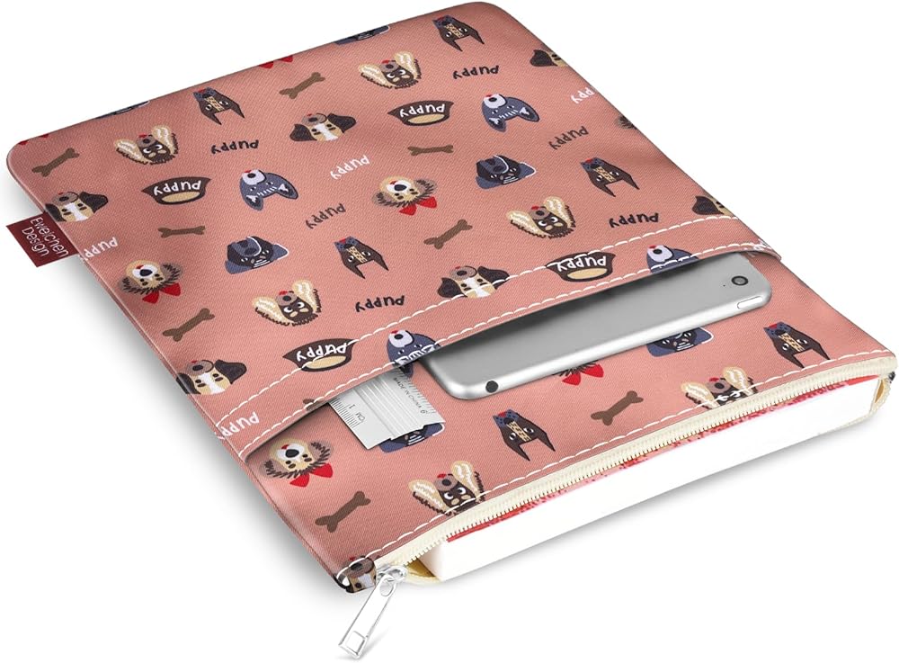 9''x11'' Book Sleeve with Zipper Book Cover for Book Lovers Book Pouch Book Protector Pouch Book Covers for Hardcover Washable Multifunctional Book Sleeves Puppy