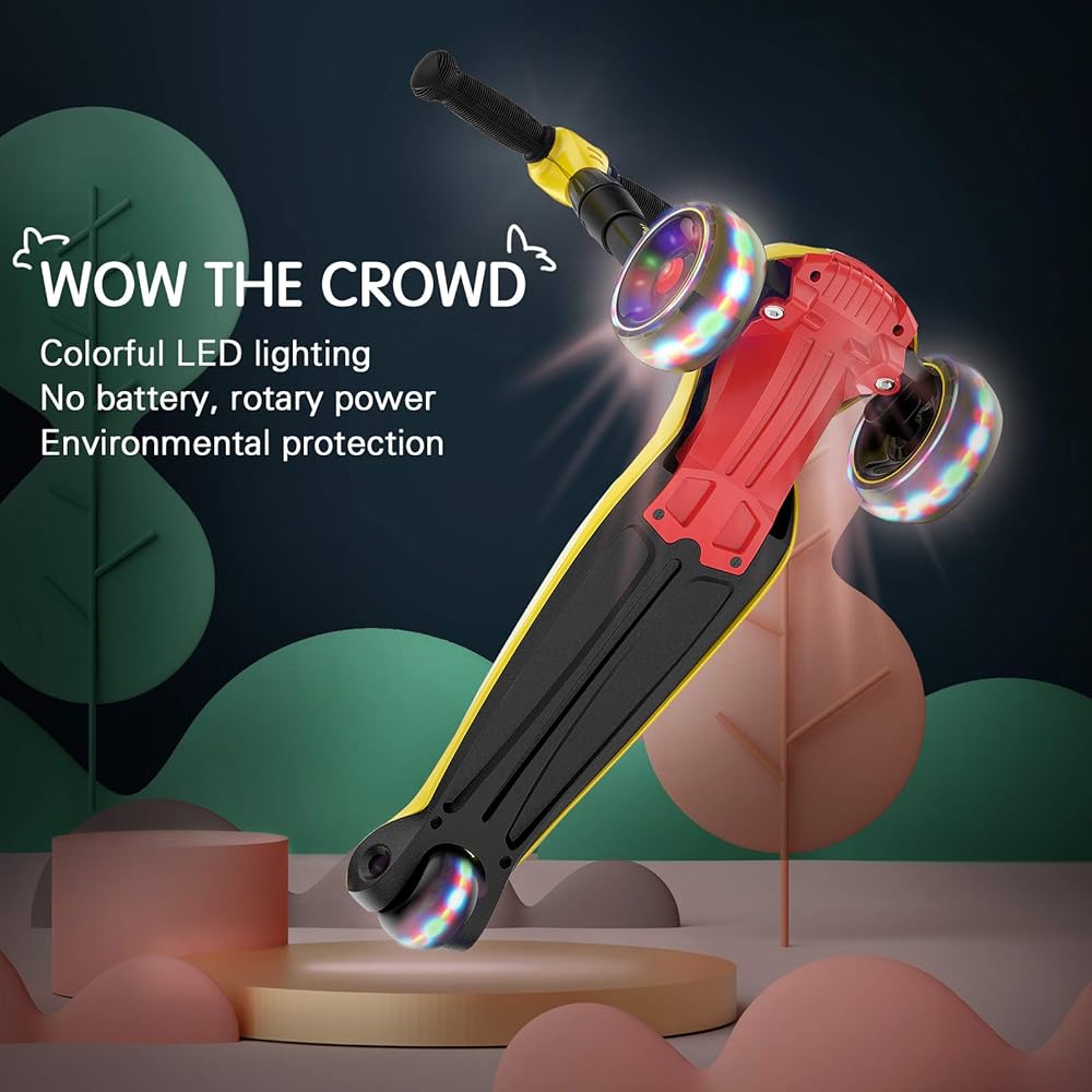 LIGHT UP YOUR LITTLE ONE'S WORLD: Kids scooter for boys girls ages 3-5 uses LEAN-TO-STEER tech just like skiing and surfing. A great sports enlightenment toy helps kids strengthen body, master balance and coordination. DOUBLE luminous bands on 3 wheels are absolutely attractive to children. The BEARINGS made of carefully selected materials make steering smooth, quiet, durable and can easily stand up to the elements and cope with various roads