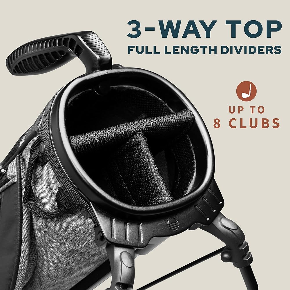 THE MINIMALIST GOLFER'S DREAM BAG. This lightweight golf carry bag can fit up to 8 clubs comfortably. The perfect bag for an evening Sunday round at an executive or par 3 course. Comes with a convenient carry handle and double strap to make walking the course very easy.