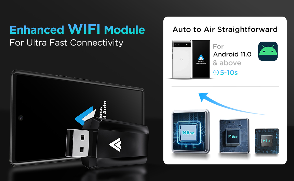 🚗【Stable Connection】Enhance your wireless Android Auto experience with the U2A-AIR. Equipped with a groundbreaking WiFi module, the U2A-AIR offers quick automatic connection in 5-15 seconds, ensuring stable transmission for an ultimate sensory experience. Enjoy voice-assisted controls without disrupting your driving, say goodbye to wires, and enjoy the freedom of wireless connectivity with Android Auto
