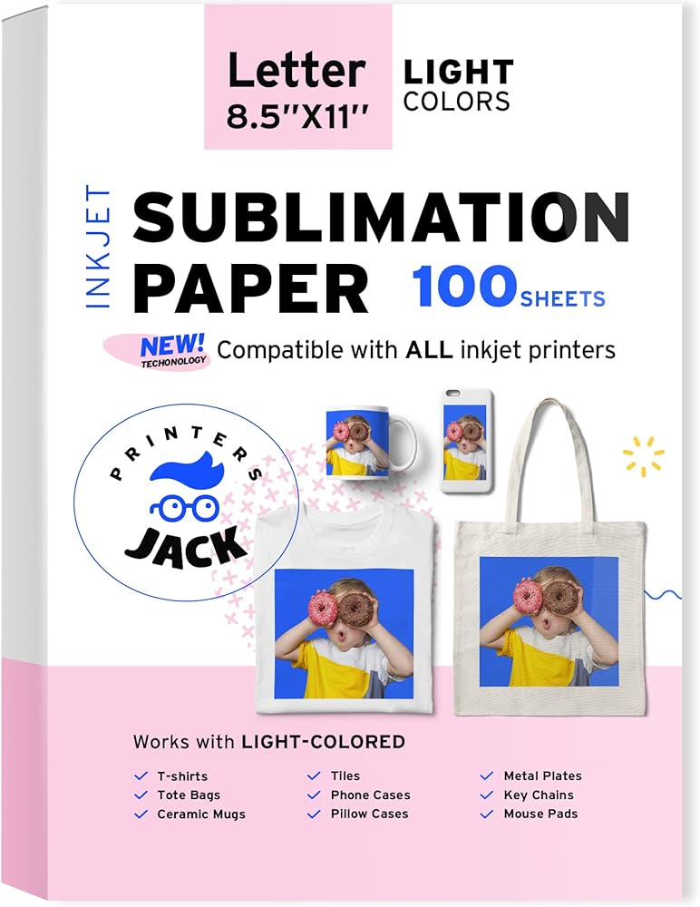 Sublimation Paper Heat Transfer Paper 100 Sheets 8.5" x 11" 125 gsm for Any Epson Sawgrass Ricoh Inkjet Printer with Sublimation Ink for DIY T shirt Mugs