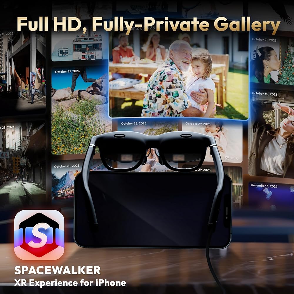 One XR/AR Glasses & HDMI Adapter for iPhone, Multiscreen Workstation, 360˚ VR Video Enabled, 2.8 Hours Battery, Play & Charge at The Same Time, XR Experience with Game Consoles (Jet Black)