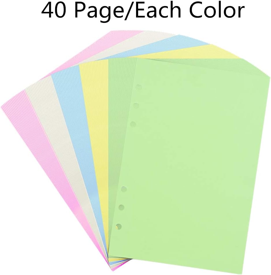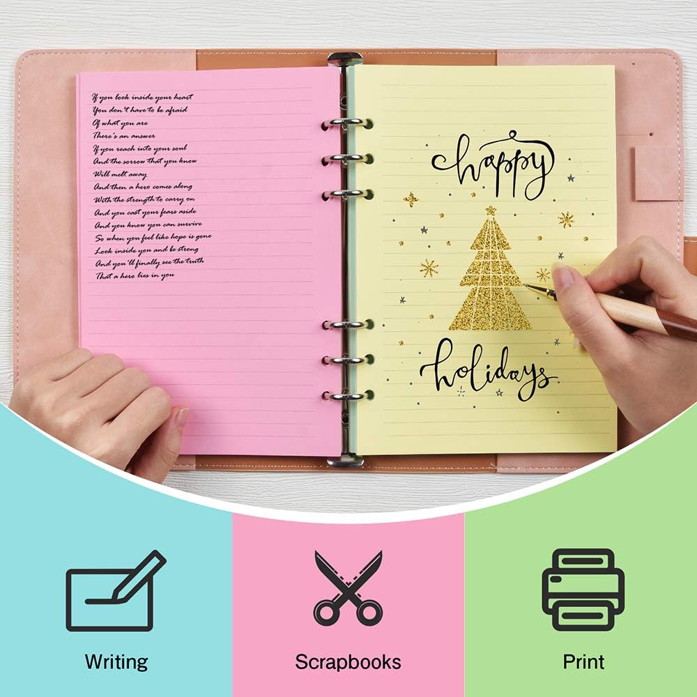 Lined Refill Paper, 200 Colored Ruled Pages for A5 Refillable 6-Ring Binder Notebook Journal Planner Organizer Insert, 120 GSM Thick Loose Leaf Paper