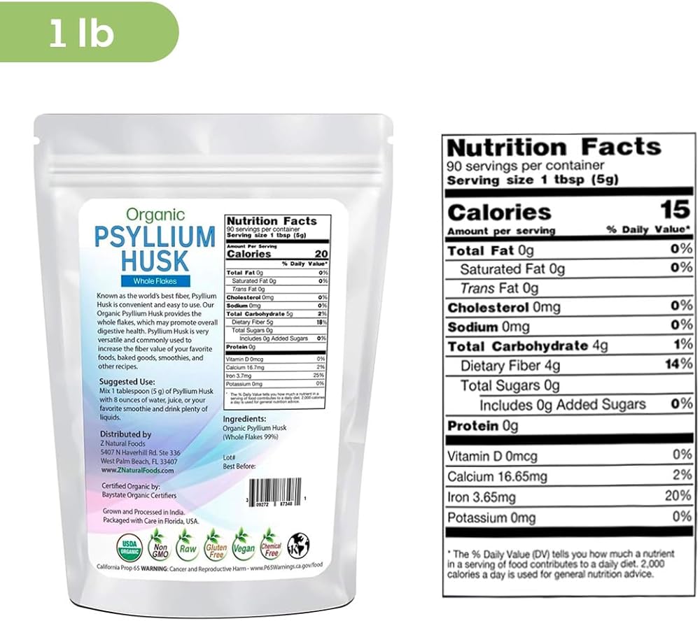 Natural Fiber Supplement: Z Natural Foods' psyllium husk is a super fiber that effortlessly blends into your juice, shakes, baked goods, and smoothies, giving your dishes a boost of nutritional goodness