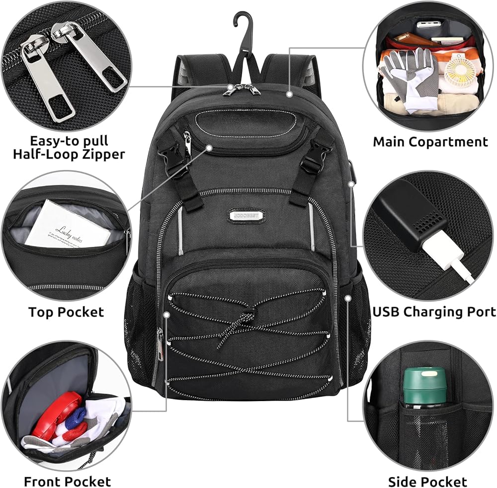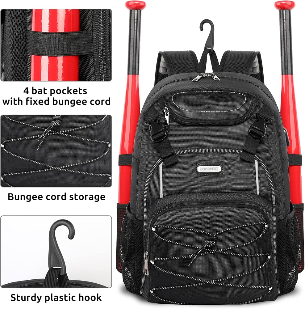 Cap Holder & Built-in Fence Hook: The front of catcher baseball bag is designed with adjustable and mutipurpose elastic bungee cord holder, stores your batting catching mittens, baseball cap, etc. to save the room of the main pocket. Unisex and modern look is perfect as a personalized baseball bag for school and college. The external fence hook is specially designed to hang your backpack on the fence.