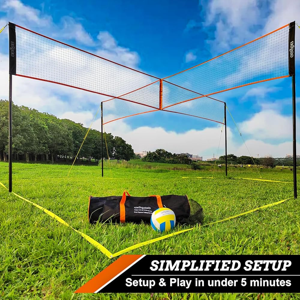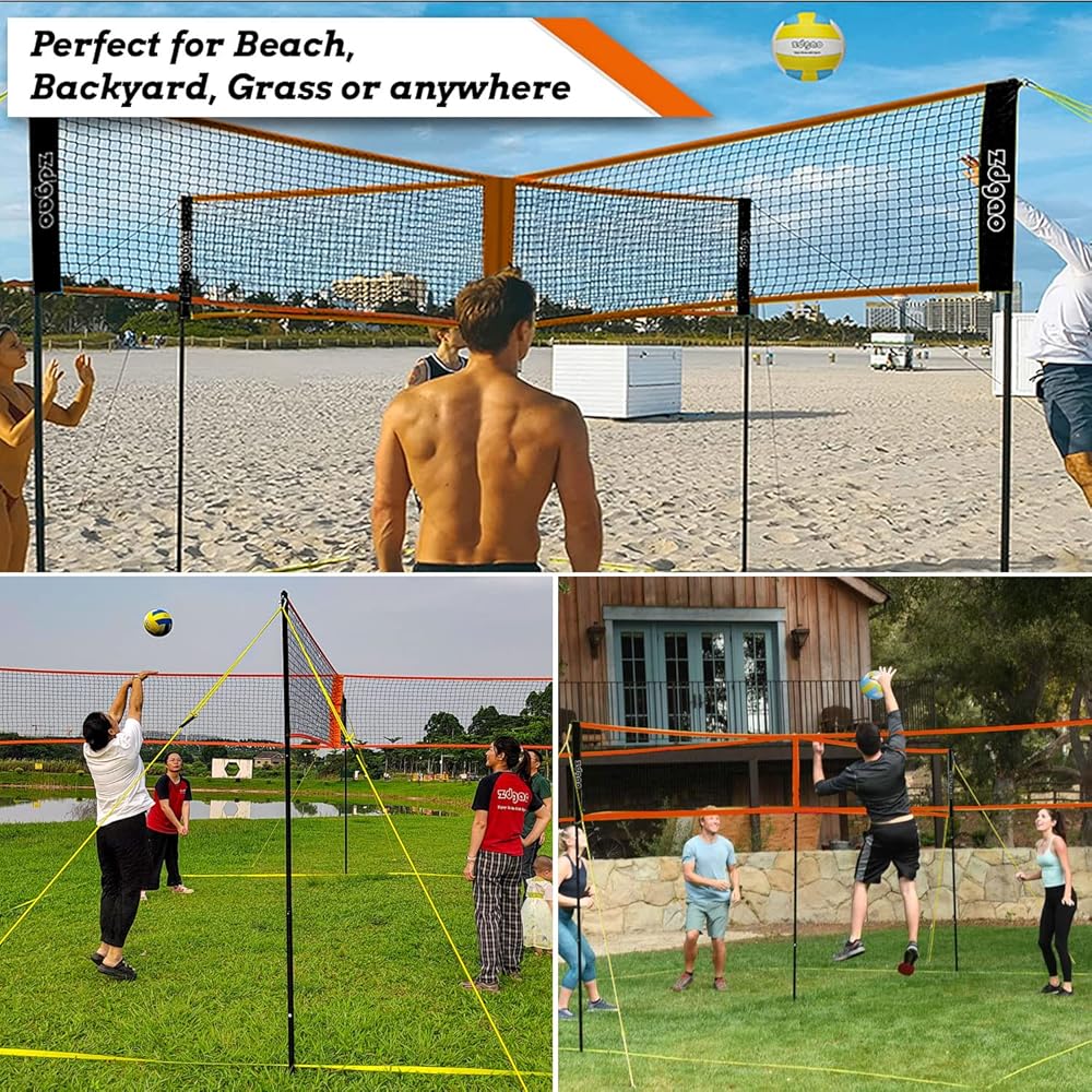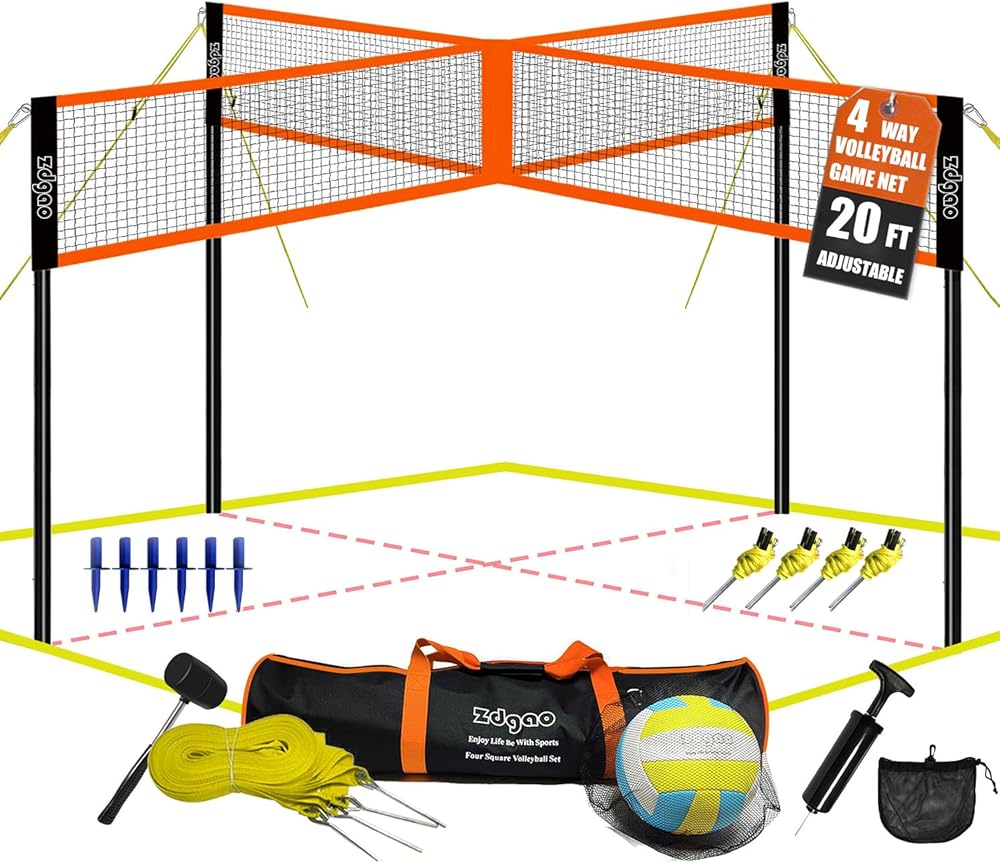 Zdgao 14 ft/20 ft 4-Way Volleyball and Badminton Combo Net with Soft Volleyball, Rubber Hammer and Carry Bag, Adjustable Height Four Square Volleyball Game Set for Backyard and Beach