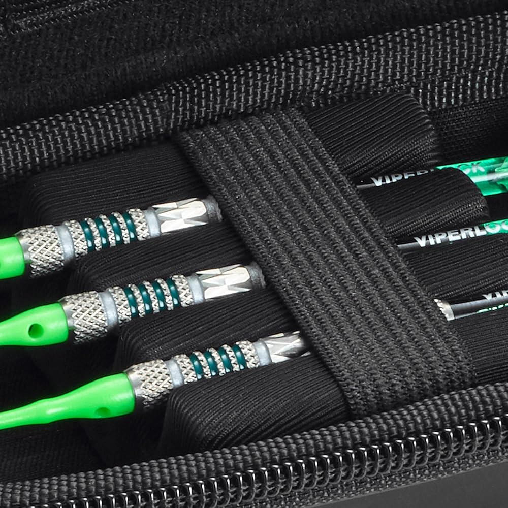 Superior Construction - This dart case features a textured grip, strong zipper, form-fitting foam slots, an elastic band to keep everything secure, and an exclusive printed design