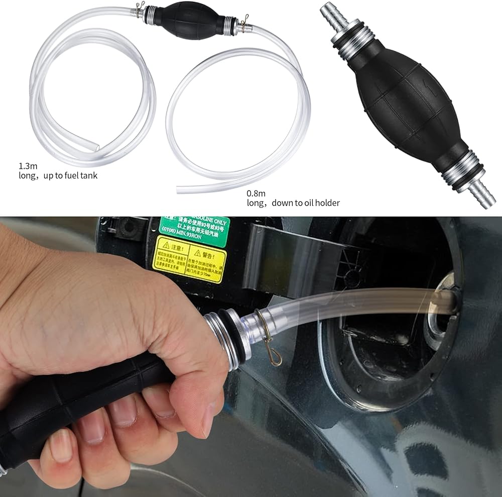 - Siphon hand pump is ideal for gasoline, oil, water and other common liquids, ideal for emergency gas transfer.