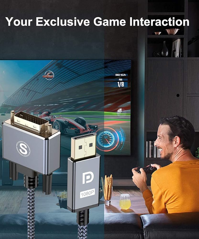 🌈[Supports 1080P@60hz Video Resolution]--Displayport DVI-D cable is fully compatible with all HDTV formats, supporting resolution at 800x600, 1024x768, 1280x1024, 1600x1200, 1920x1200, and 1080P Full HD.