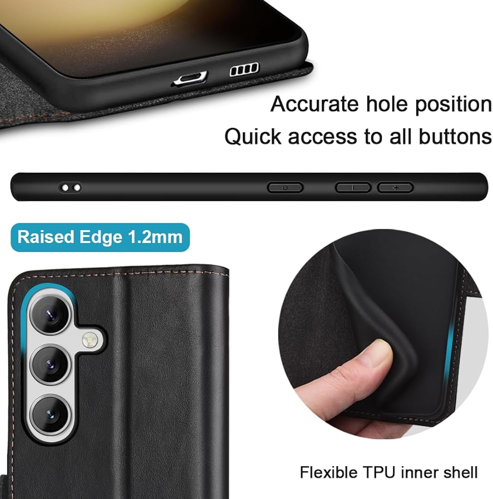 [COMPREHENSIVE PROTECTION] - The Case for Galaxy S24 Plus made of premium genuine leather. Flexible durable soft TPU inner case provides a great dual-layer protection for your devive so as to protect your phone against scratches, bumps, shocks, dirt, daily wear and tear.