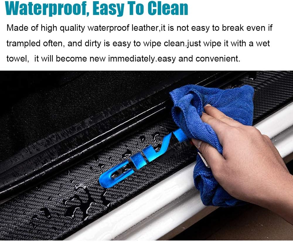 【Material】: Made of premium leater in carbon fiber look, and high-performance adhesive is used on the back side to against glue remains on the door sill after a certain period of time.