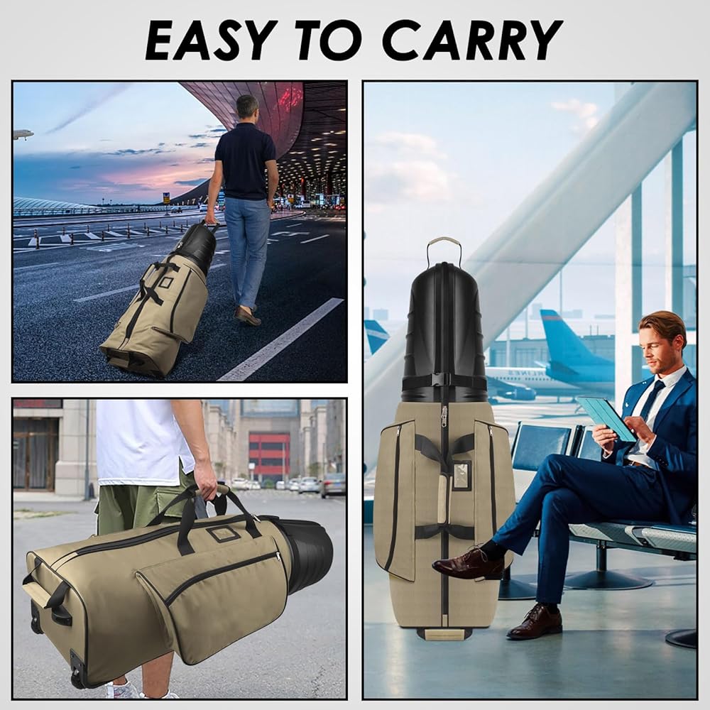 HARD & DURABLE ABS SHELL: Golf bag travel case is made of hard ABS and thickened waterproof oxford, which can withstand huge impact and pressure. It's durable and can be used frequently without worrying about wear and tear during travel