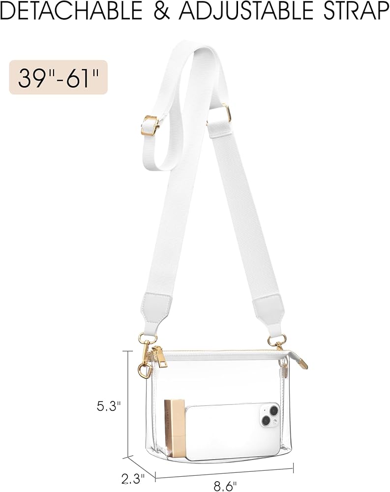 Clear Bag Stadium Approved: FANGSUN's clear bag fully complies with stadium and venue tournament bag policies, making it perfect for sporting events, concerts, festivals, travel, and work. The transparent purse and proper size allow you to get through security checks easily and save you time searching for your belongings