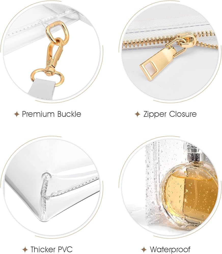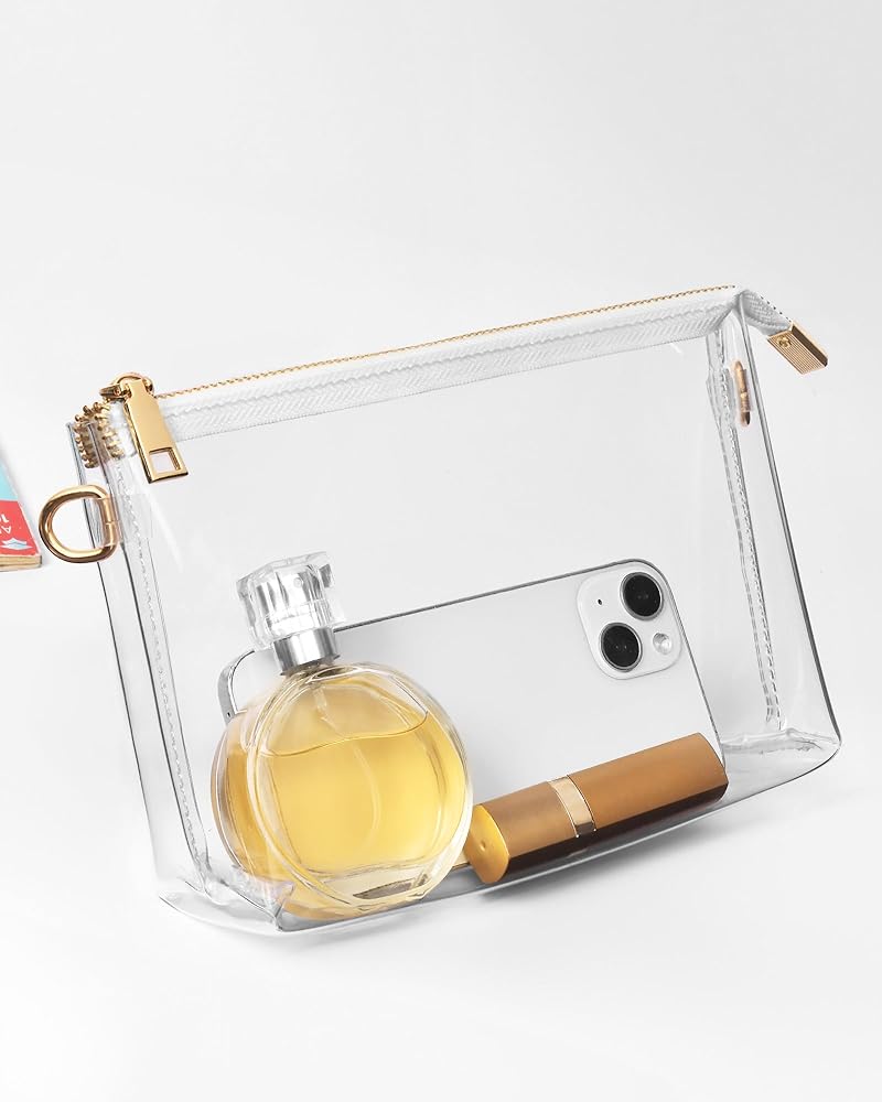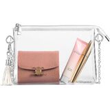 Spacious Enough to Hold Your Belongings: Measuring 8" x 6" x 1.5", this transparent bag provides ample space for your phone, wallet, cosmetics, keys, cash, cards, tickets, and more. The zipper closure ensures that your items remain secure while also providing easy access to them