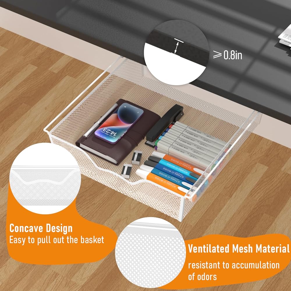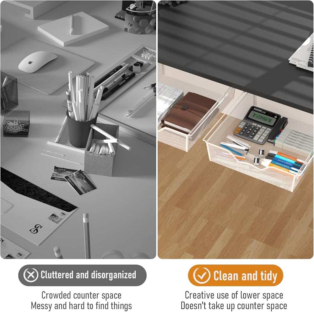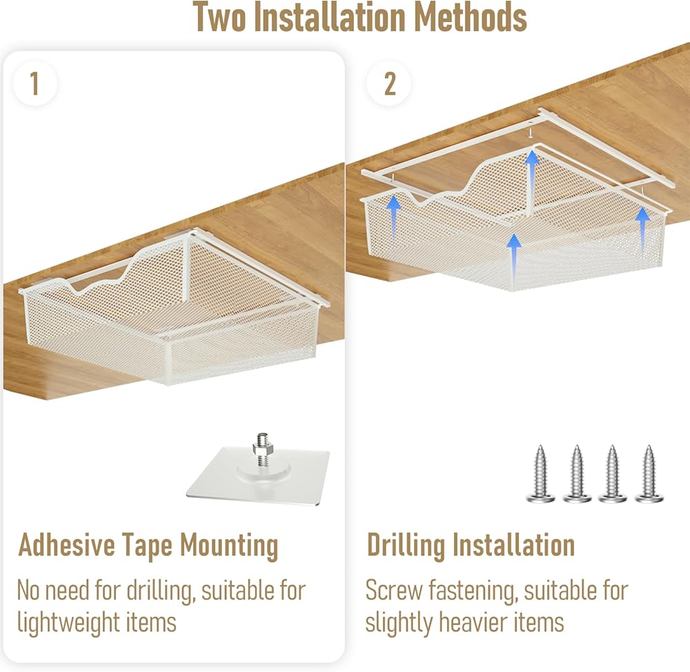 【Versatile Storage Solution】Whether you need to store files, office supplies, utensils, or kitchen items, this hidden mesh under table drawer is perfect for the job. It even includes 2 screws to ensure the drawer stays securely in place when extended