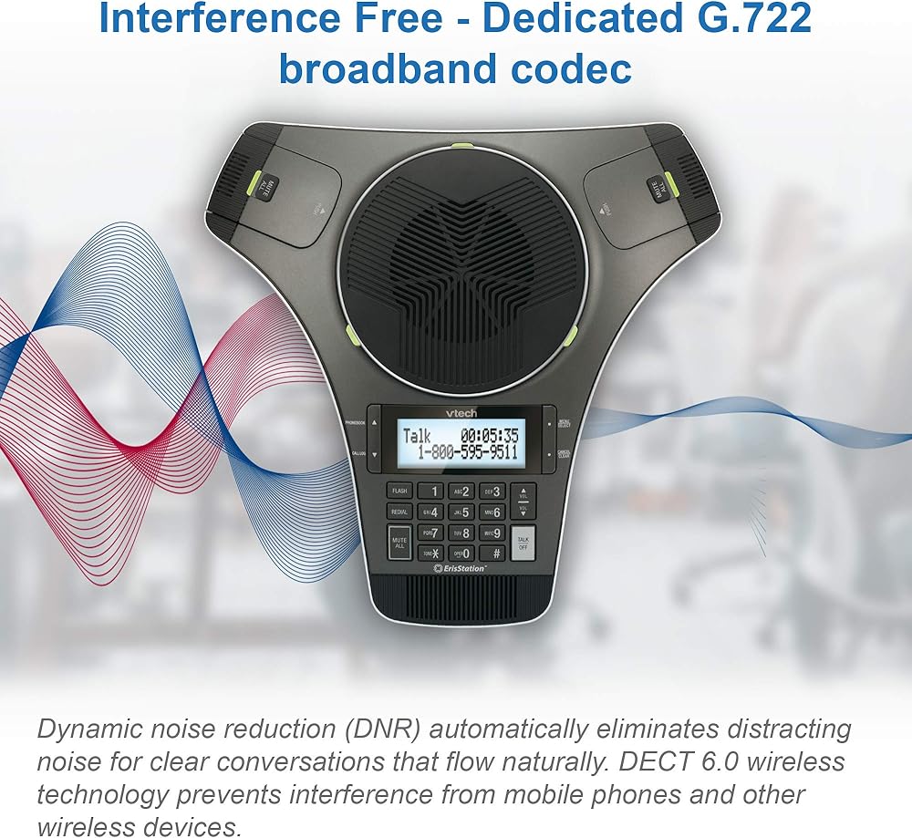 [Wireless freedom with DECT 6.0 Technology] - Free yourself from the clutter of wires by placing the conference phone up to 150 feet from the base station.