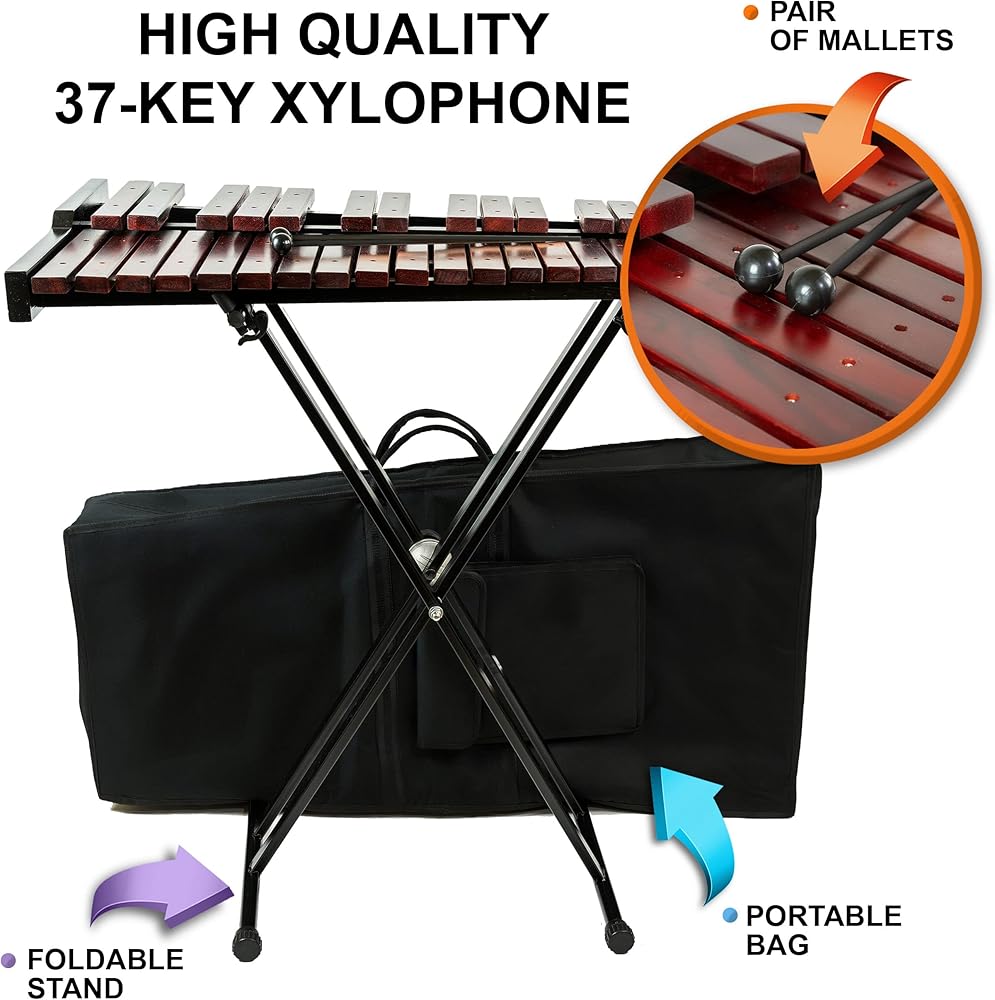 37 Key Professional Chromatic Xylophone with Mallets, Adjustable Stand, and Carrying Bag - Wooden Glockenspiel