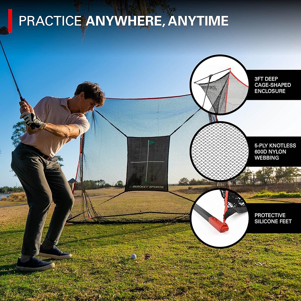 USE THE SAME NET THE PROS USE: Developed and endorsed by legendary University of Georgia coach Chris Haack. People who are serious about taking their game to the next level know this is the only golf net cage for them. The net return and golf practice cage design allows you to hit hundreds of shots with the same ball while utilizing every club in your bag.