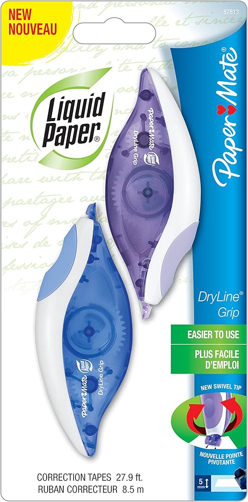 Quickly cover your mistakes while you're on the go with Liquid Paper DryLine Grip Correction Tape. This convenient tape dispenser features an ultra-compact, pocket-sized design that fits easily into pencil cases, planners, and book bags. The tape goes down absolutely smooth and corrects instantly with no mess, so you never need to wait for it to dry before copying, rewriting, or retyping. You also enjoy an ergonomic shape that fits comfortably in your hand providing a secure hold for added control. And here's a tip for the best corrections: place your paper on a firm, flat surface and slowly roll the applicator over the error using firm, even pressure. Do-overs done right, it's like mistakes were never even there.