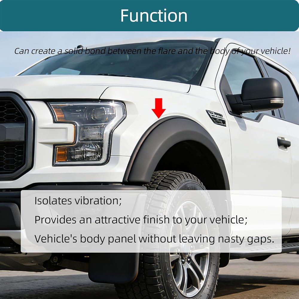 FUNCTION: The fender flare edge trim can create a solid bond between the flare and the body of your vehicle, isolates vibration and provides an attractive finish to your vehicle, and your vehicle's body panel without leaving nasty gaps.