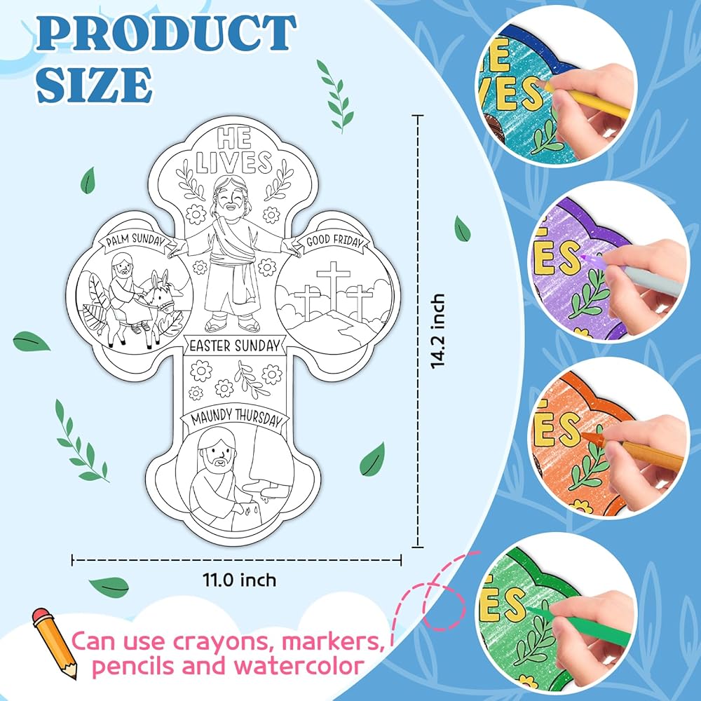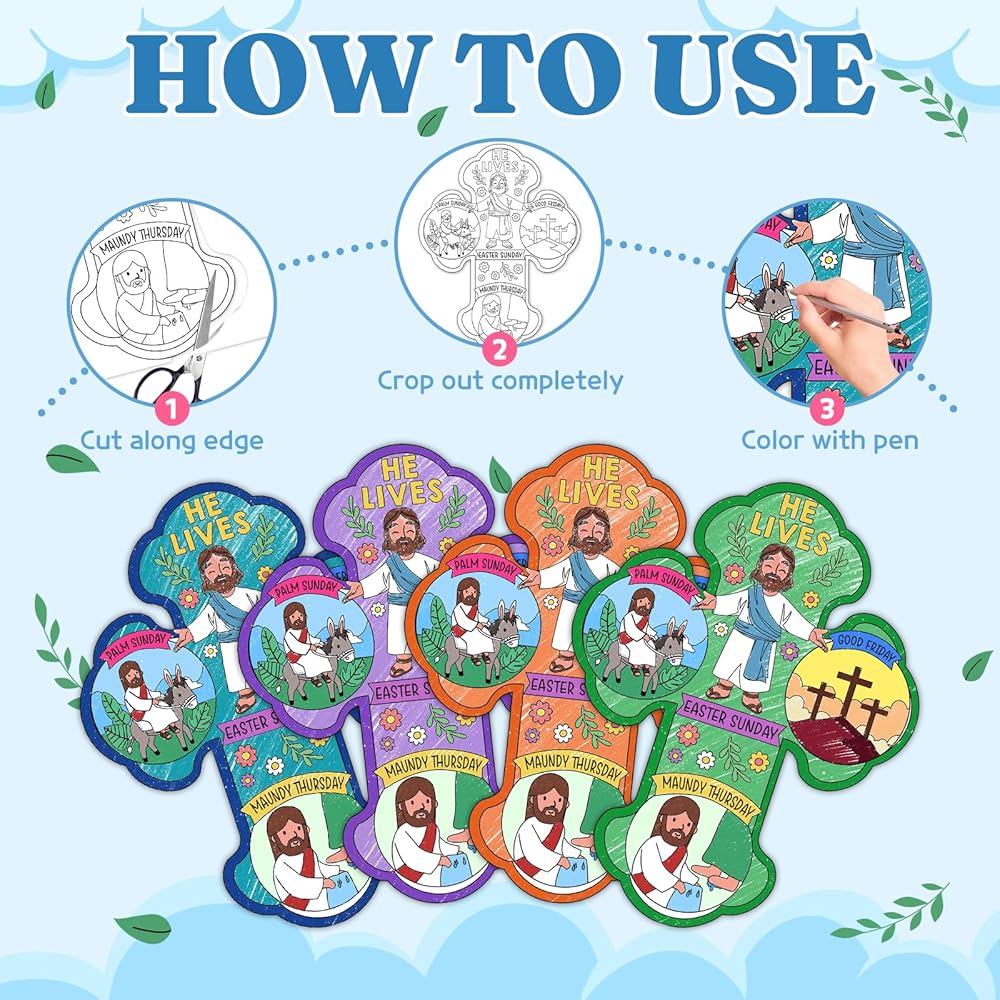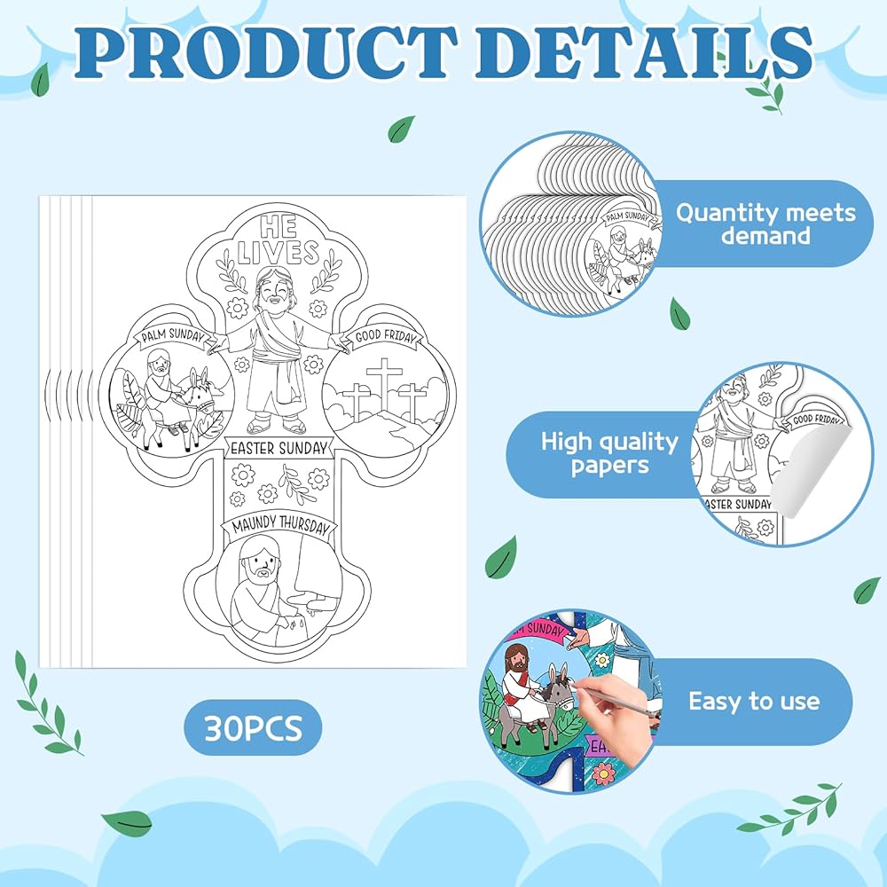 Zoyeven 30Pcs Color Your Own Holy Week Crosses Religious Poster for Easter Bible Cross Sunday School Crafts Christian Crafts for Kids DIY Fun Classroom Home Activities