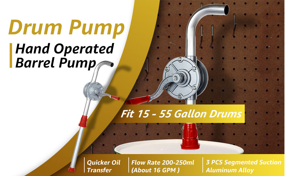 Easy to Use Hand Pump: Great Filter at the bottom of the suction tube separate the oil and the oil dirt effectively. Hand Drum Pump Flow Rate 200-250ML (About 16 GPM ). Support clockwise direction rotary.