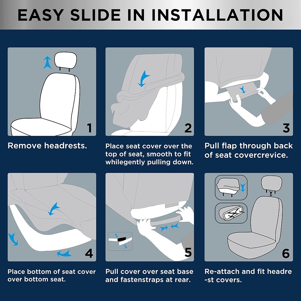 EASY TO INSTALL - Follow our simple installation process to install the front seat covers before finishing off with the rear bench seat cover and headrest covers.