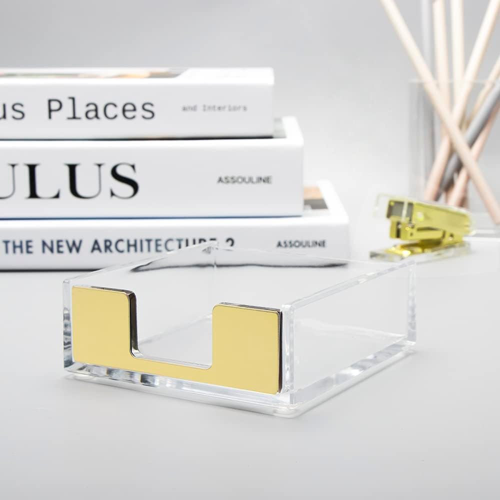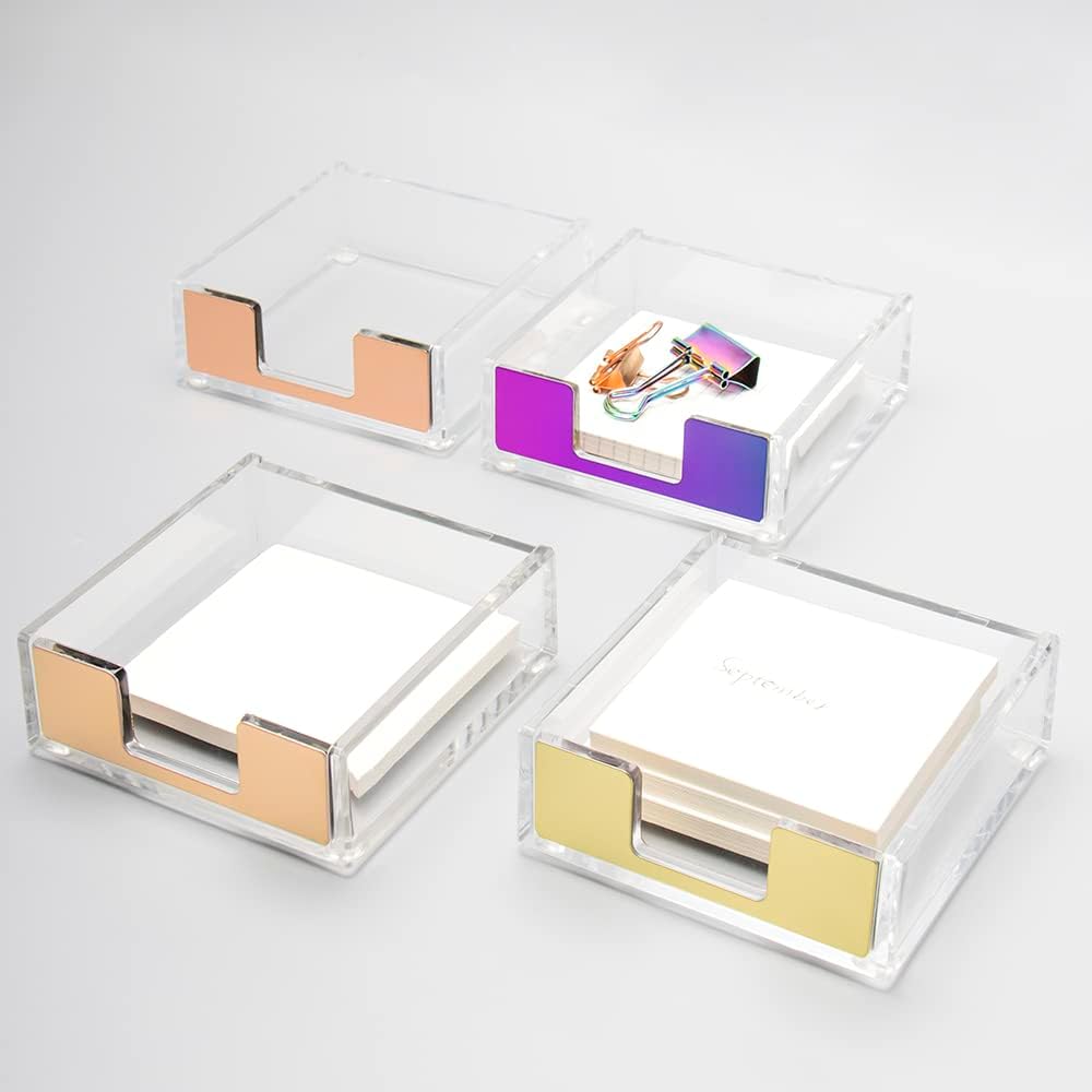 PACKAGE -- 1pc clear acrylic copper gold sticky memo holder note cube dispenser per package (Memo Pad NOT Included).