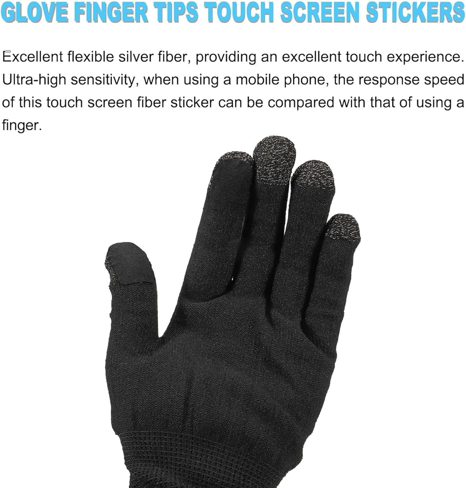Package Content: 30pcs x Glove Finger Tips Touch Screen Stickers; Total Size(LxW): 25x20mm/1x0.8 inch