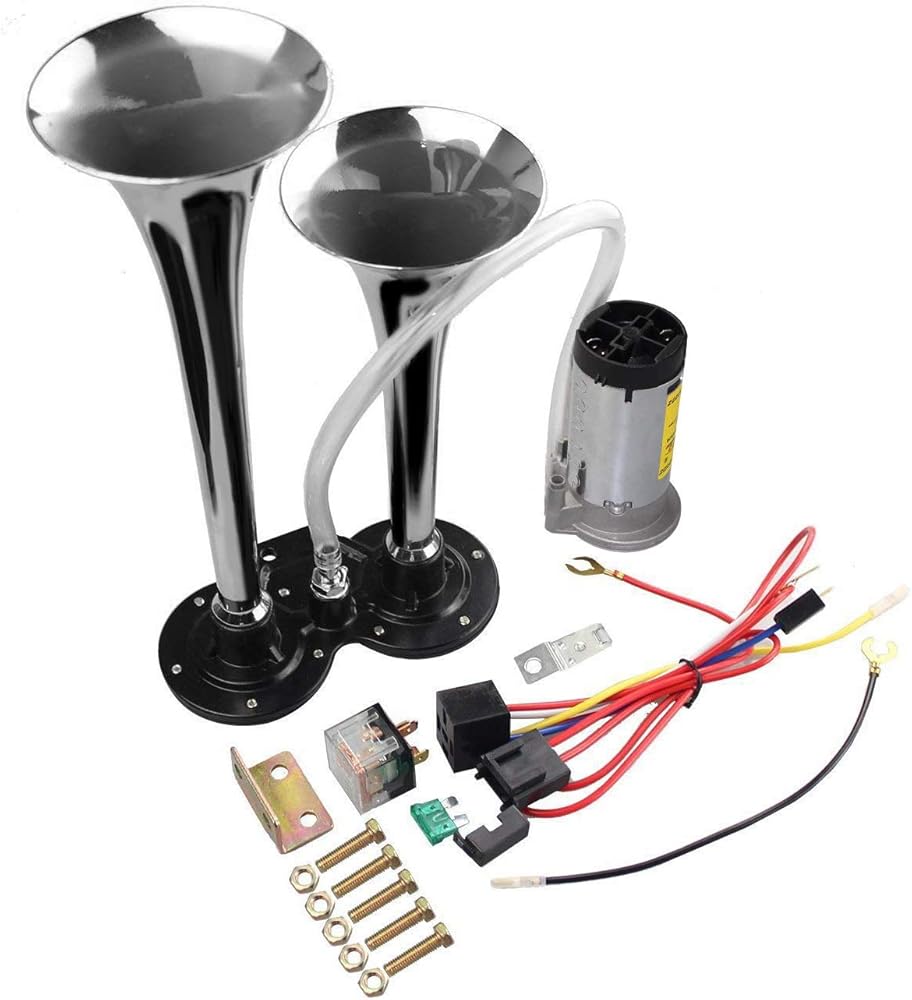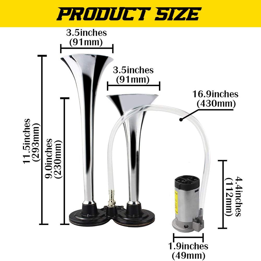 12V 150db Air Horn, Chrome Zinc Dual Trumpet Air Horn with Compressor for Any 12V Vehicles Trucks Lorrys Trains Boats Cars Vans