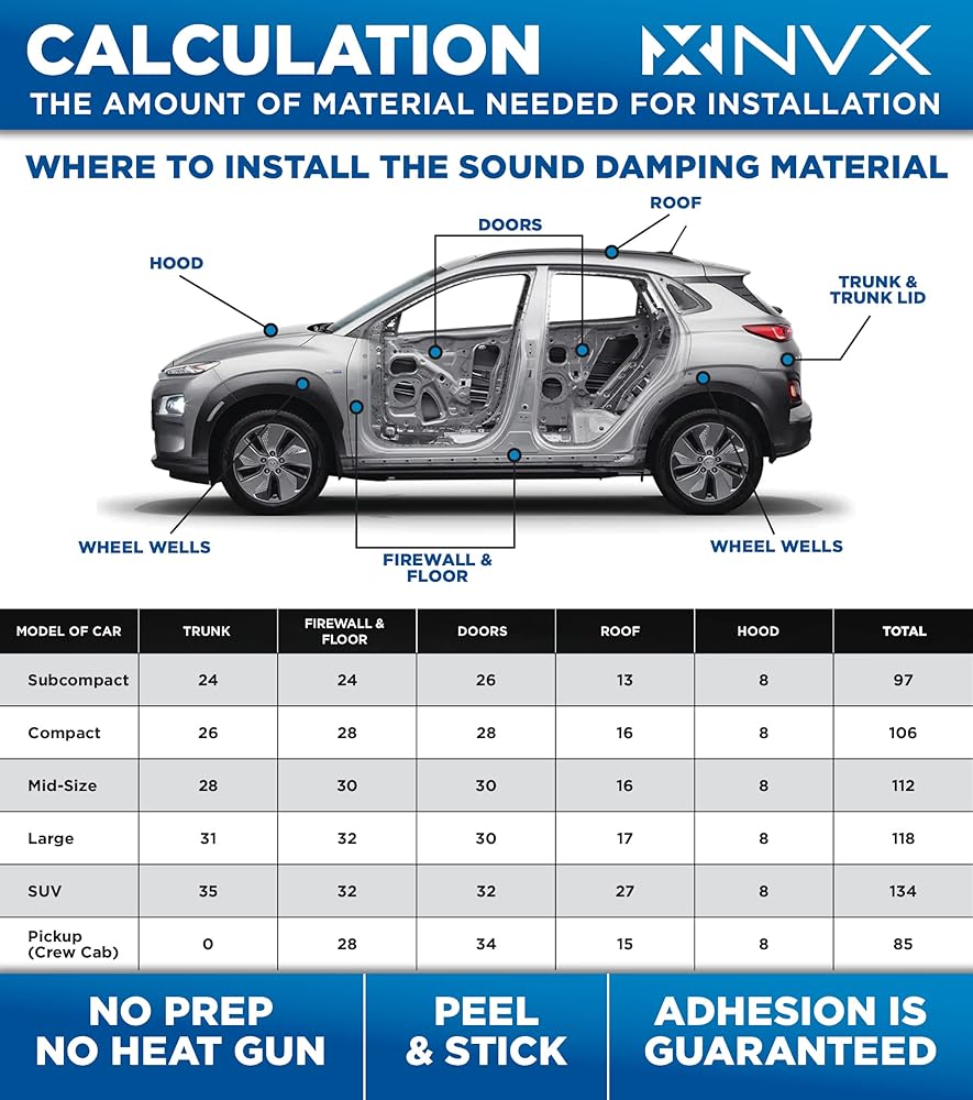 NVX Stealth Black SDBSK2 90 mil Thick 1.38 sqft. Car Sound Damping Mat, Butyl Automotive Sound Deadener, Audio Noise Vibration Insulation, and Dampening (Two 10" x 10" Pieces) - Speaker Kit