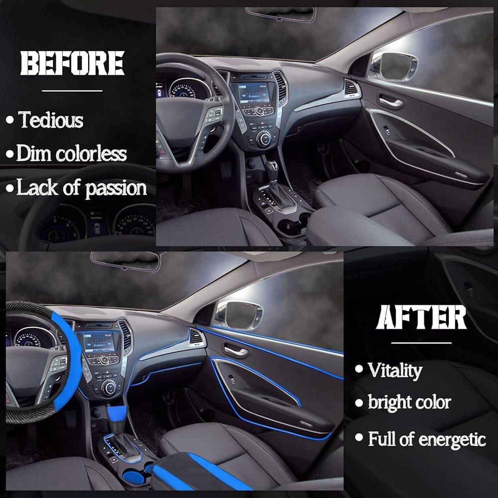 Abundant to Choose: you will receive 30 pieces of black and red car accessories, 1 red and black PU leather cover for steering wheel, 2 cup mats, 1 gear shift cover, 1 handbrake cover, 2 safety belt covers, 1 armrest cover, 20 automobile air conditioner air outlet trim strips, 1 roll of 5 meter/ 16.4 ft automobile interior molding trim, and 1 scraper, a complete set for car interior decorating