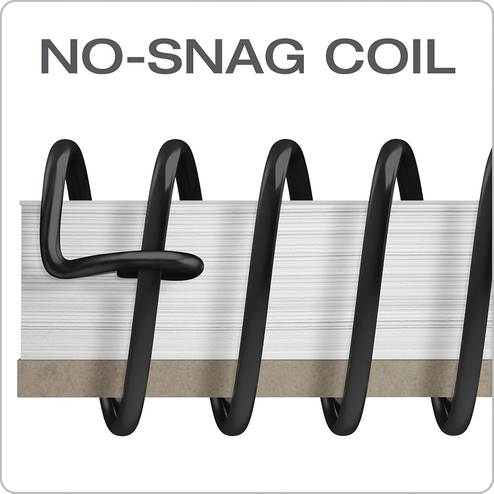 A no-snag coil resists catching on papers or clothing; perforated sheets detach easily