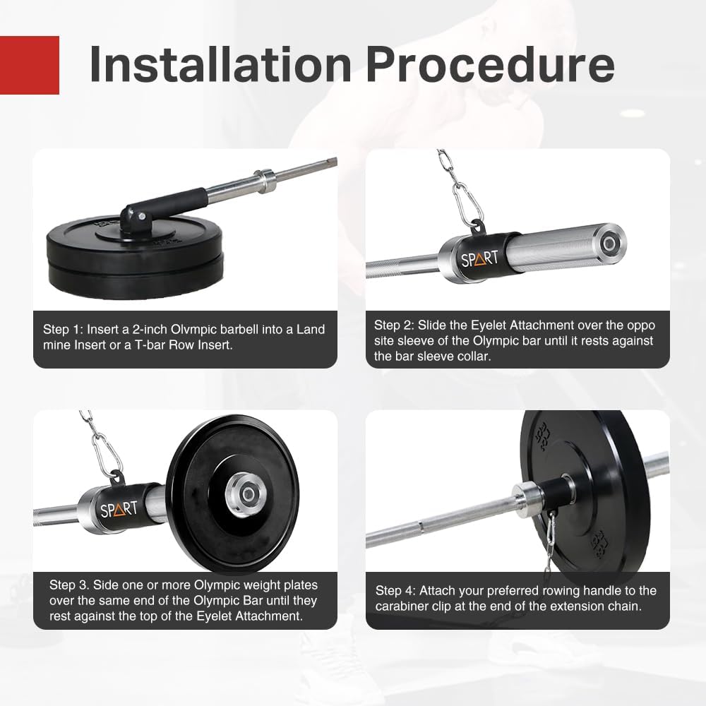 💪COMPATIBLE WITH OLYMPIC BARS: SPART Eyelet Attachment has a universal design which is compatible with 2-inch Olympic barbells, great for intermediate and higher level users.