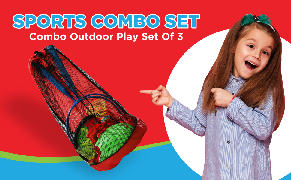 High Bounce 3 in1 Outdoor Games Combo Set for Kids, with Badminton Rackets Set, Toss and Catch Ball Set, Sliding Zoom Ball Game, Mesh Bag, Birdies, and Tennis Ball Included