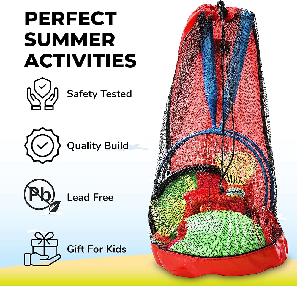 PORTABLE FUN: The perfect summer beach game for kids! Use the mesh bag to pack up all the outdoor game sets and take them along with you on outings, vacations, as well as trips to the seaside or park