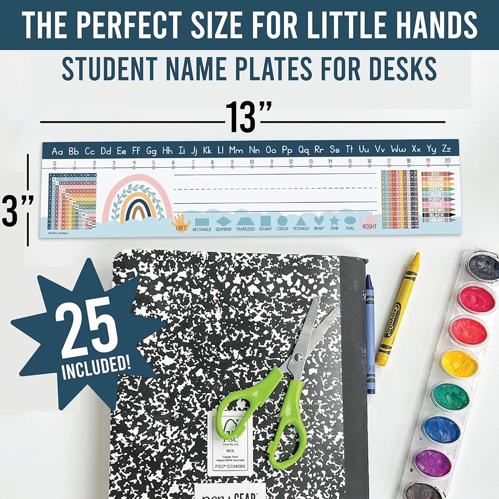 Hadley Designs Desk Name Tags for Classroom – 25 Student Name Plates for Desk Classroom Decor, Boho School Nametags, Nameplates for Desks - 1st, 2nd, 3rd Grade, Kindergarten, Preschool Must Haves