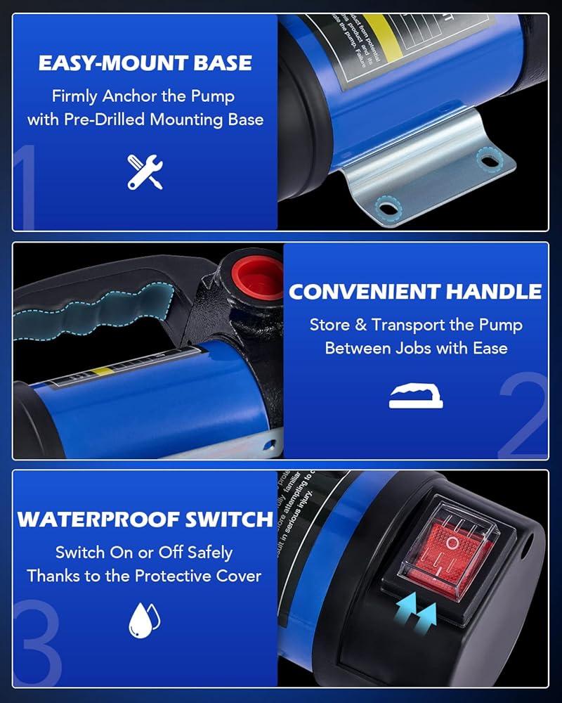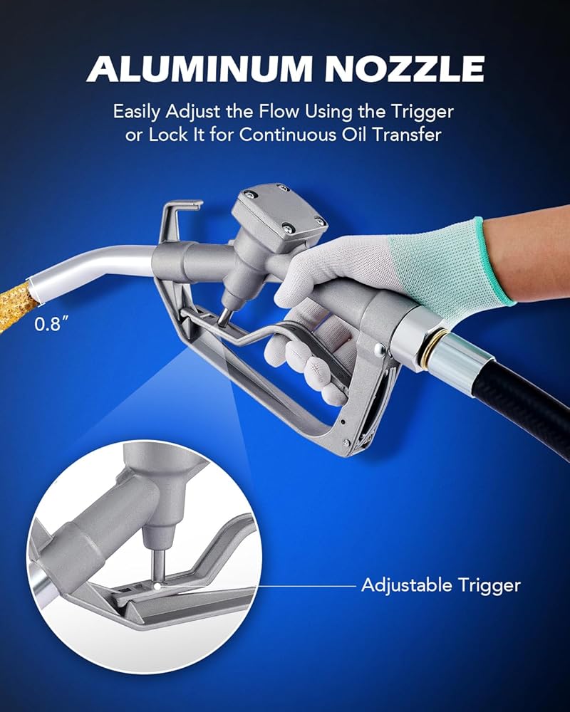 Your All-in-One Oil Transfer Solution: Our versatile electric fuel pump works with any low viscosity oil from diesel to kerosene, machine oil to transformer oil, ideal for cars, boats, lawn mowers, and more