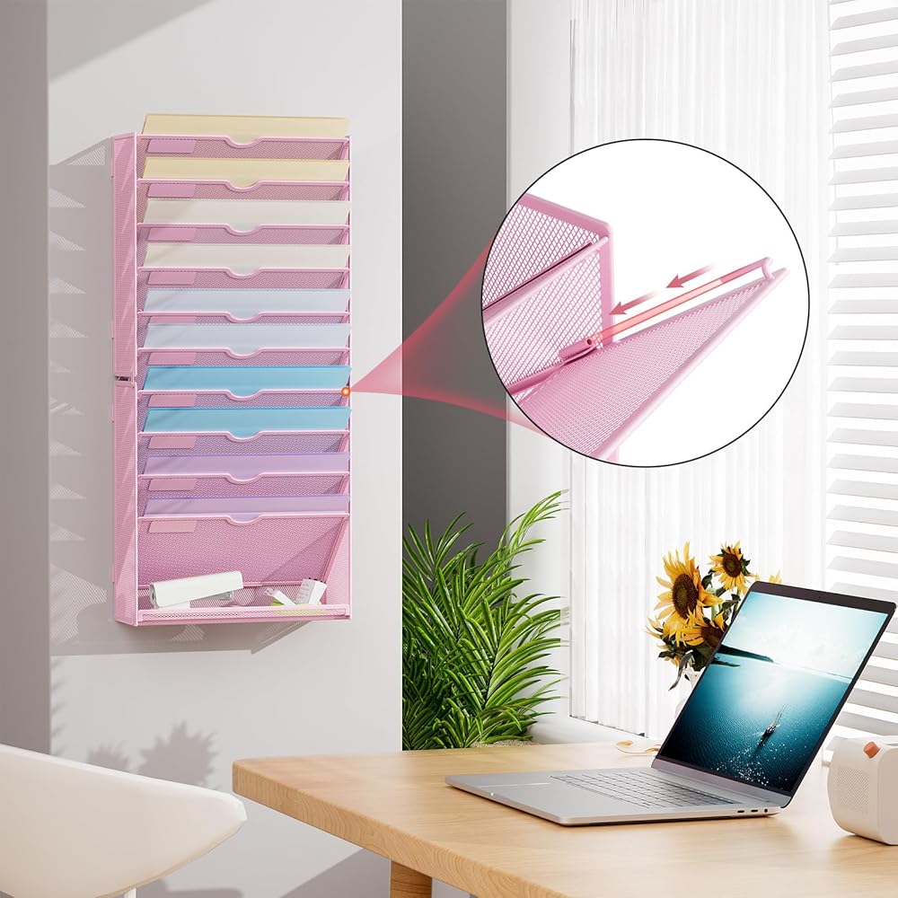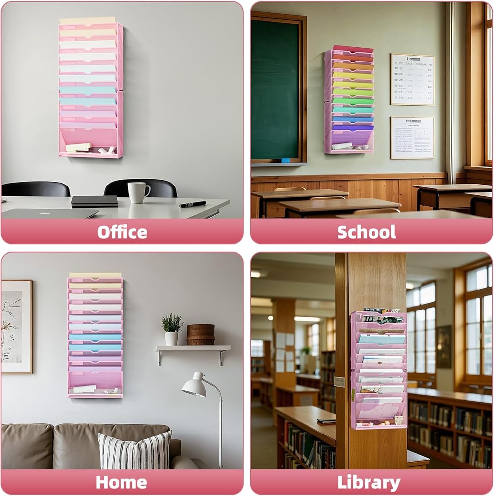 【Space Saveing】This wall file organizer has 6 separate cascading slots and has enough space to store your office stationery, such as holds letter-size charts and files, perfect for sorting organize notebooks, binders, file folders, literature, catalogs, mail, brochures, manilla envelopes and so on.