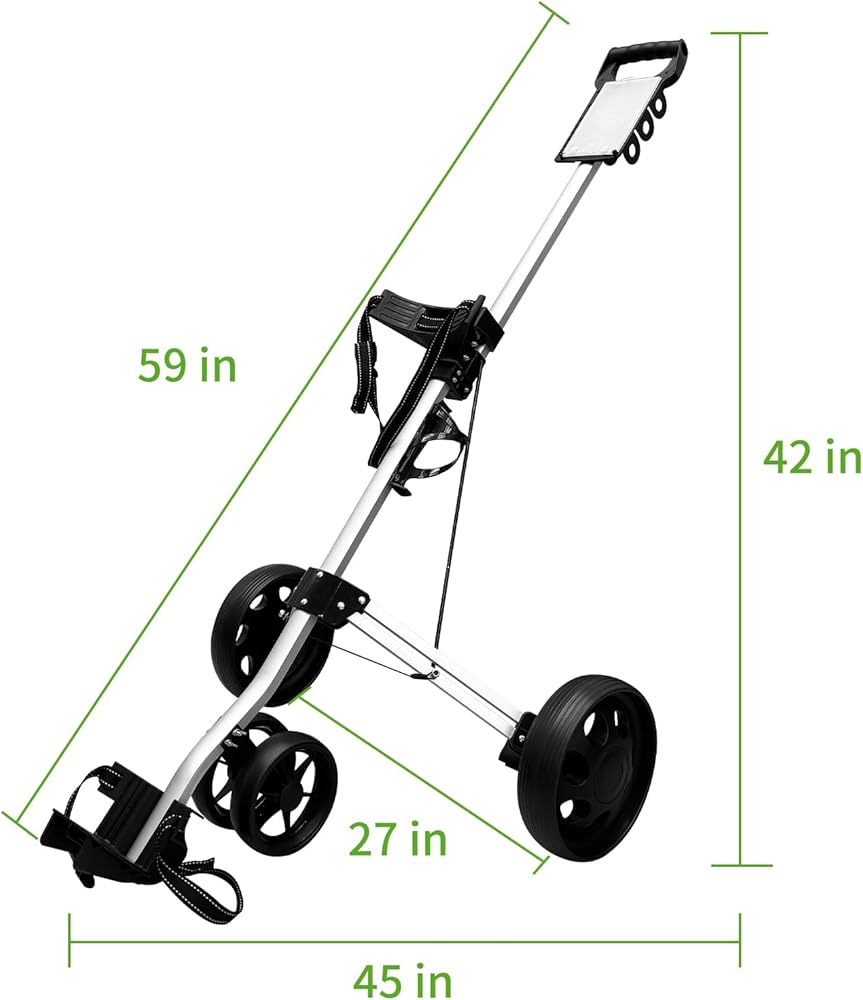 ✅【LIGHTWEIGHT AND DURABLE】The JJM Golf Cart 4 Wheel Folding Golf Cart is made of aluminum frame, weighs only 6.6 lbs and carries about 33 lbs, making it easy to push or pull around the course.