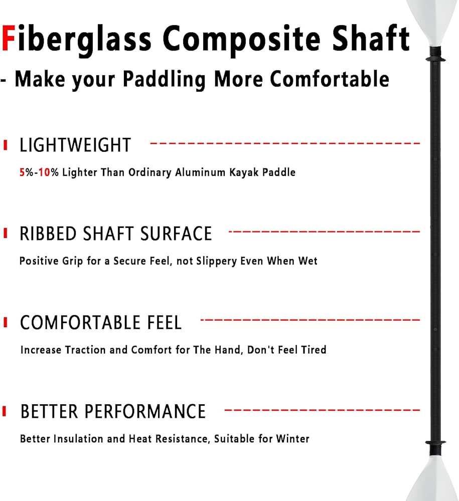 Diamond Quality --- Consists of Fiberglass Shaft and Nylon Blade, lighter and more durable. Blade Width: 18cm/7", Blade Length: 42cm/16.5". Overall weight is only 2.4 lbs