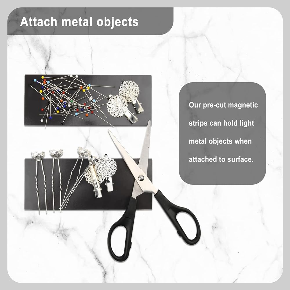🖇️ Use note - The strong magnetic tape can be effortlessly cut with standard household scissors. After application, you can remove the adhesive magnetic strips without leaving any residue.