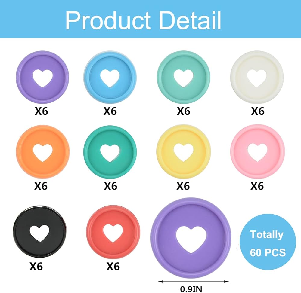 Abundant quantity: there are totally 60 pieces plastic mini discs in 6 different colors, each color accounts for 10 pieces,each binder ring is 0.94 inch in diameter and a love heart in center,sufficient quantity to meet your needs during work, school or daily life.
