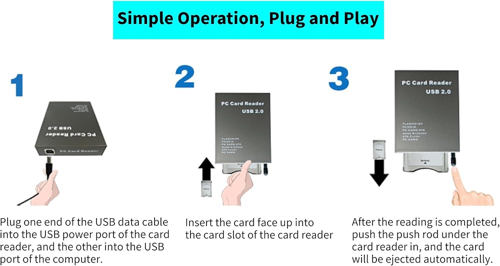 【Support PCMCIA Hot Plug】Not need to power off, do not need to pull the USB interface, directly change the card,it will It automatically recognizes, use push rod to press the PC card out.