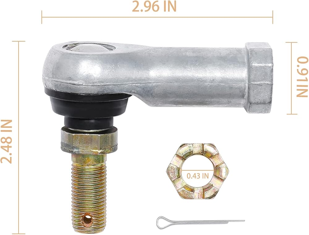Function:When the tie rod is worn down, it will become loose and will cause the front end of the vehicle to fall out of alignment. If you notice that your ATV is pulling in one direction, it may be a loose or worn out tie rod end that is causing the problem. This will cause Steering wheel shakes or feels loose. & the tires will have uneven wear. Which will affect driving safety and parking privacy. Replace the tie rod end in time to eliminate potential safety hazards.