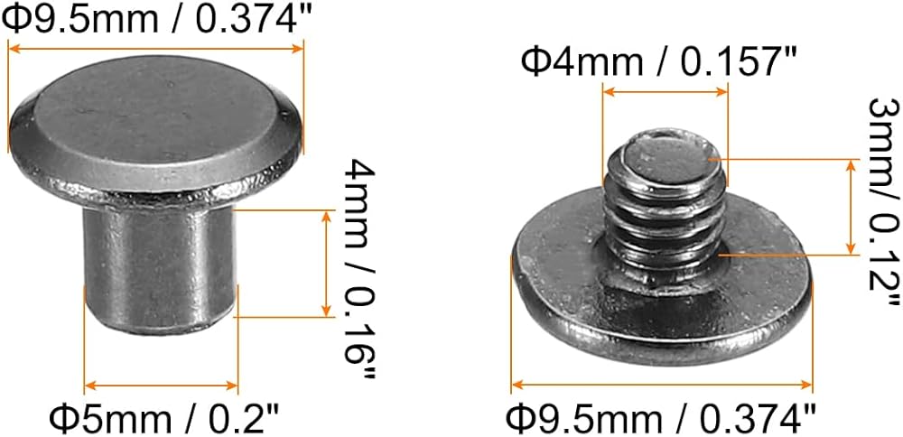 Chicago leather rivets screws are made of solid carbon steel and plated with Antique Copper, which is rust-proof, durable, non-fading, anti-corrosion, anti-oxidation, round and smooth, flat and burr-free, will not make scratches on leather.