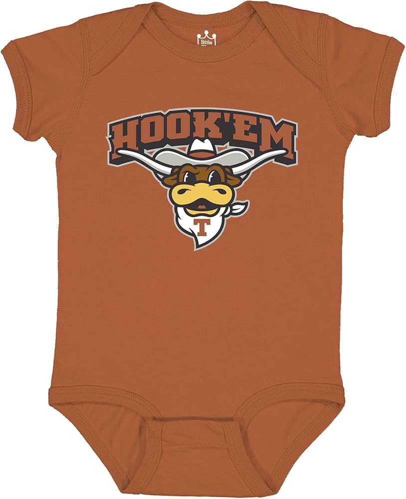 HIGH QUALITY-YET STILL ADORABLE COLLEGE BABY APPAREL features 2 short-sleeve NCAA Romper Bodysuits in Home and Away team colors. Each Bodysuit features 100% QUALITY SOFT COTTON, lap shoulder neckline - as well as three snaps at the bottom for easy dressing- with a College Logo/Mascot look. Screen Printed Graphics with Official NCAA Team Colors and Logos. Tagless Collar.