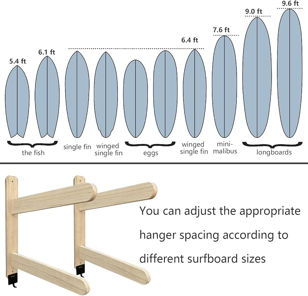 🌊 【خشب عالي الجودة】رف لوح ركوب الأمواج الخاص بنا مصنوع من خشب البتولا الطبيعي والصديق للبيئة عالي الجودة، والذي يتمتع بقوة ومتانة ممتازة. يمكنك تخزين وعرض لوح التزلج أو لوح التزلج الخاص بك بأمان. مصنوعة بشكل جيد ومتينة، يمكنك الشراء بثقة.